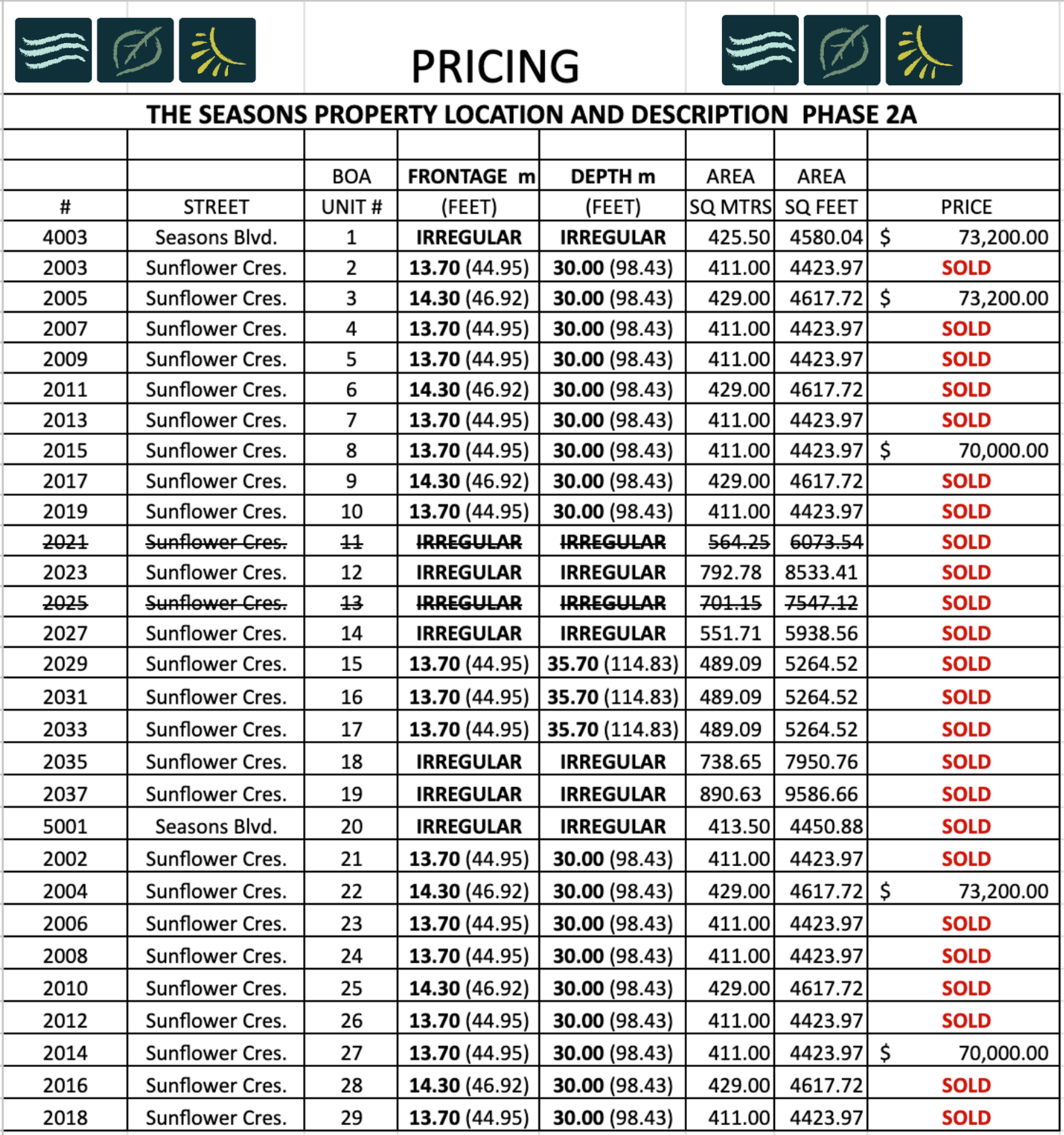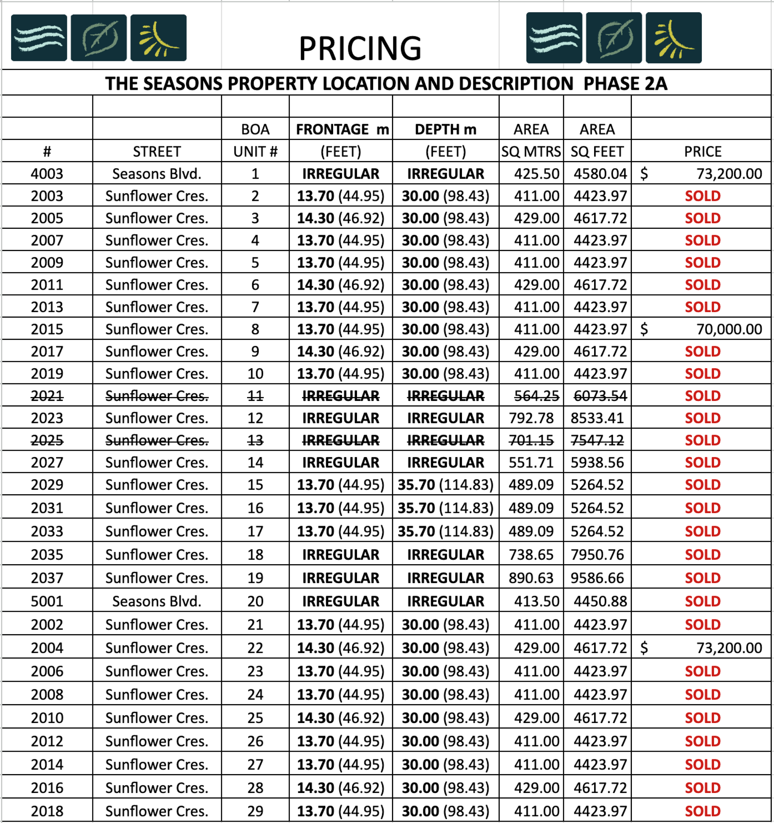 Please fill out the provided form if you have any questions or would like to reserve your lot at The Seasons.